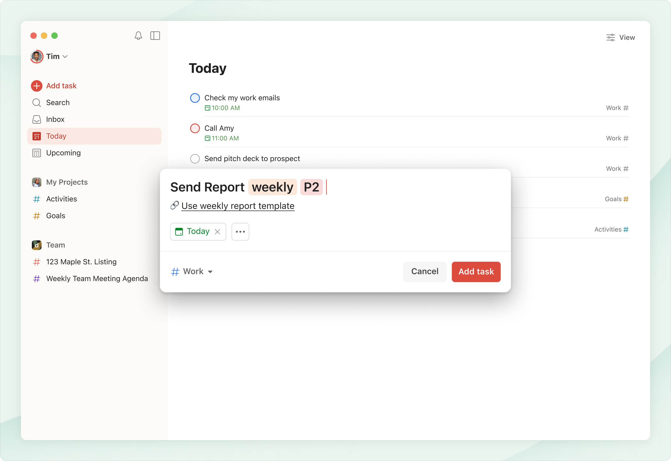 Todoist excels at capturing tasks quickly, primarily through its natural language processing and upcoming Ramble mode, which I predict will be a killer feature for them.